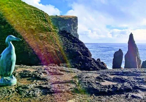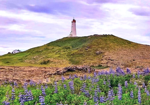 We admire Iceland's oldest lighthouse, situated in a spectacular volcanic setting overlooking the ocean.